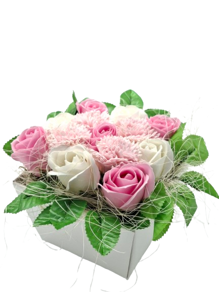 Onze zeepbloemen worden geleverd in een stijlvolle flowerbox van 16,5 x 16,5 x 16,5 cm, waardoor ze perfect zijn voor elke gelegenheid. Geef een cadeau dat niet alleen visueel aantrekkelijk is, maar ook een luxe ervaring biedt.Kies voor zeepbloemen en laat de speciale vrouw in je leven zich geliefd en gewaardeerd voelen!