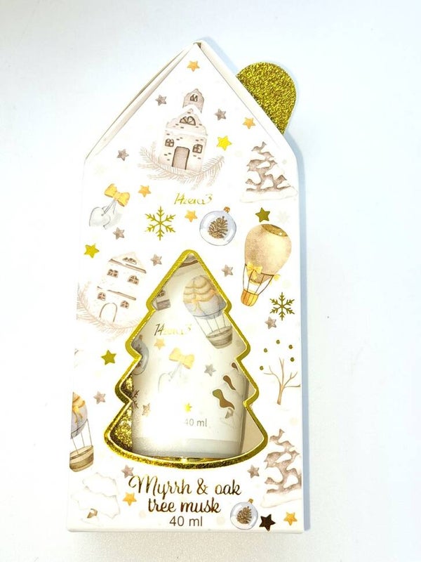 Handcrème 40ml en Glittervijl "Twinkle". Geur van Mirre & Ekenmuskus, verpakt in huisvormig doosje (6x3,5x13,5 cm). Vijl: 2x14 cm.
