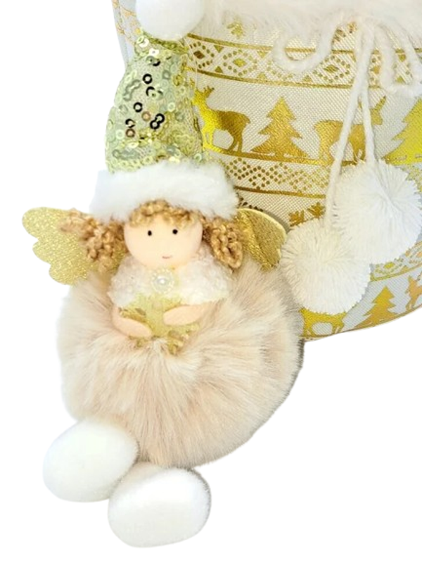 Engel Hanger – Decoratieve engel met imitatiebont en pailletten (10x6x24 cm).