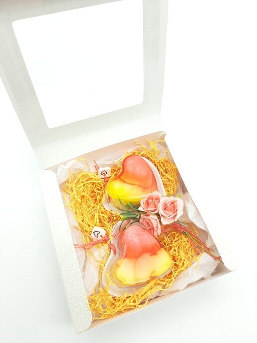 Deze giftset ruikt verrukkelijk! Een leuk cadeautje is soms lastig te vinden. Maar met dit kleine cadeautje zit je altijd goed. Dit cadeau gebruik je in de badkamer en bevat een heerlijk geurend zeepje ( en hartvormig zeepschaaltje. Maak iemand blij met dit mooie cadeautje!! Set van 2. Zeephartjes zijn handgemaakt van glycerine met natuurlijke geur en kleurstoffen. Alles is netjes ingepakt in een mooi doosje 16x16cm.