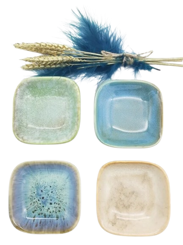 Ontdek onze prachtige set van geglazuurd aardewerk tapas schaaltjes, perfect voor elke gelegenheid. Deze set bevat vier handgemaakte schaaltjes van 8,5cm x 8,5cm, ideaal voor het serveren van tapas, snacks of kleine gerechtjes. Inclusief een handgemaakt servetmandje van 23cm x 23cm, voegt deze set een stijlvolle touch toe aan je tafel. Als extraatje wordt deze set geleverd met een bosje gedroogde bloemen, waardoor het een perfect cadeau is voor elke liefhebber van decoratie en heerlijk eten. Breng sfeer en elegantie in je huis met deze unieke combinatie!